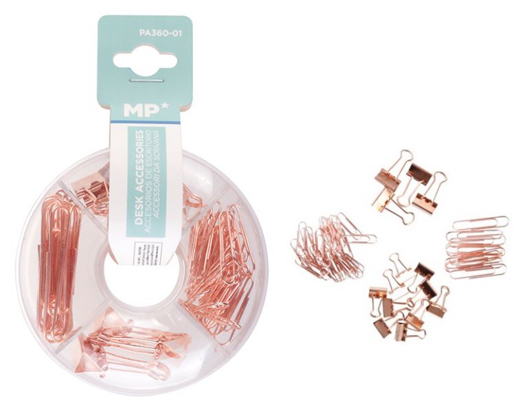 MP σετ γραφείου PA360-01 με συνδετήρες και κλιπ, ροζ χρυσό
