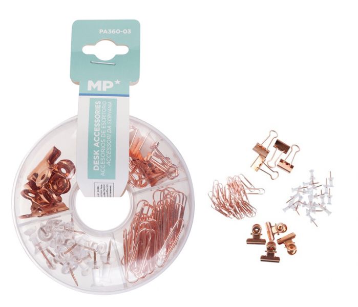 MP σετ γραφείου PA360-03 με συνδετήρες, κλιπ & πινέζες, ροζ χρυσό