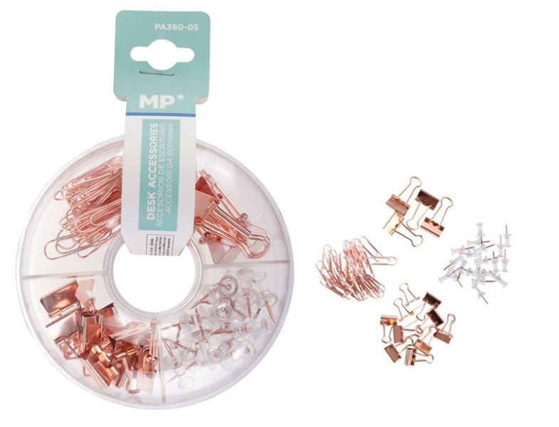 MP σετ γραφείου PA360-05 με συνδετήρες, κλιπ & πινέζες, ροζ χρυσό