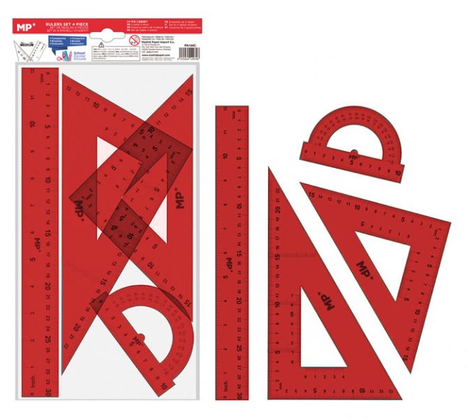 MP σετ χάρακες PA144C, διάφανο πλαστικό, 4τμχ, κόκκινο