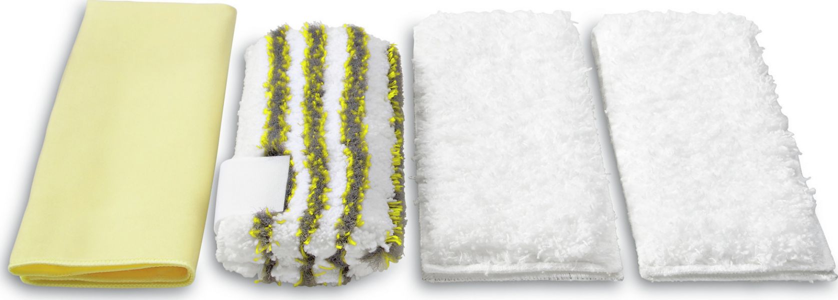 Το σετ πανιών περιέχει διάφορα πανιά από μικροΐνες για χρήση του ατμοκαθαριστή στο μπάνιο.