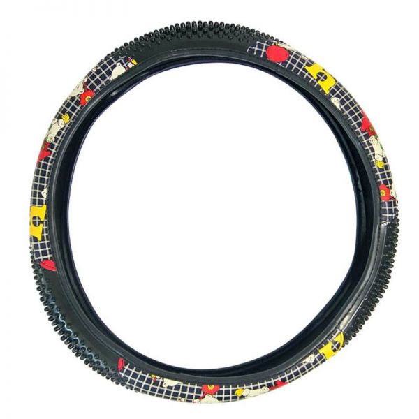 Κάλυμμα Τιμονιού Αυτοκινήτου Δερματίνη Παραστάσεις Μαύρο Medium 38cm
