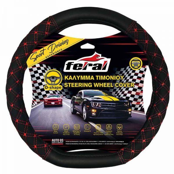 Κάλυμμα Τιμονιού Αυτοκινήτου Δερματίνη Elegant D Σχήμα Μαύρο Με Κόκκινη Ραφή Medium 38cm