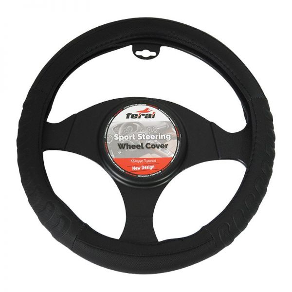 Κάλυμμα Τιμονιού Αυτοκινήτου PU Ανάγλυφο Μαύρο Medium 38cm