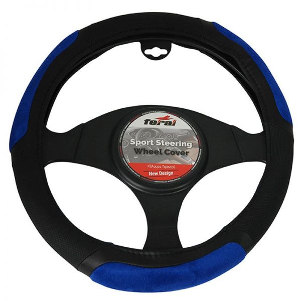 Κάλυμμα Τιμονιού Αυτοκινήτου PU Δίχρωμο Μαύρο/Μπλε Medium 38cm