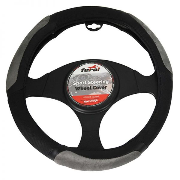 Κάλυμμα Τιμονιού Αυτοκινήτου PU Δίχρωμο Μαύρο/Γκρι Medium 38cm