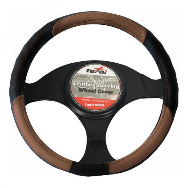 Κάλυμμα Τιμονιού Αυτοκινήτου Δερμάτινο Λείο/ Τρυπητό Μαύρο/Καφέ Medium 38cm