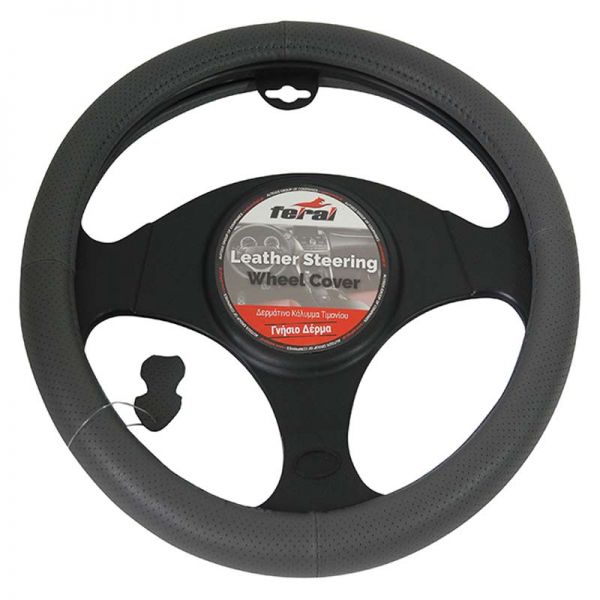 Κάλυμμα Τιμονιού Αυτοκινήτου Δερμάτινο Με Τρυπητό Γκρι Medium 38cm