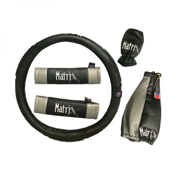 Τα Καλύμματα Τιμονιού Matrix είναι κατασκευασμένα από δερματίνη υψηλής ποιότητας και νέο υλικό στο εσωτερικό όλων των τιμονιών από μη ανακυκλωμένο λάστιχο. Είναι καλύμματα για το τιμόνι του οχήματός σας, τα οποία τοποθετούνται εύκολα και γρήγορα προστατεύοντας το τιμόνι από ζημιές και φθορές και προσφέρουν άνετη οδήγηση. Είναι 100 % άοσμα και διατίθενται σε διάσταση: m και σε χρώματα: μαύρο – κόκκινο, μαύρο – μπλε και μαύρο – γκρι.