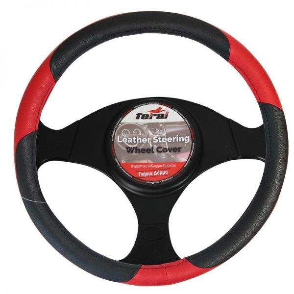 Κάλυμμα Τιμονιού Αυτοκινήτου Δερμάτινο Μαύρο/Κόκκινο Medium 38cm - Steering wheel covers