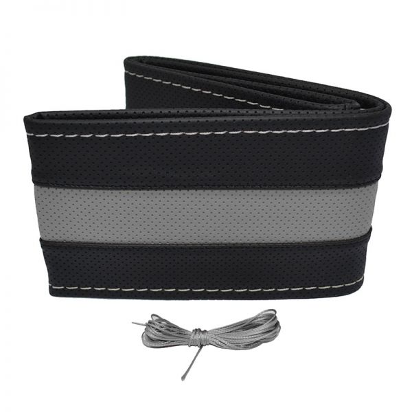 Κάλυμμα Τιμονιού Αυτοκινήτου Otom Stitching Δερματίνη Ραφτό Εξώγαζο Μαύρο - Γκρι Medium 37-39cm DK-305