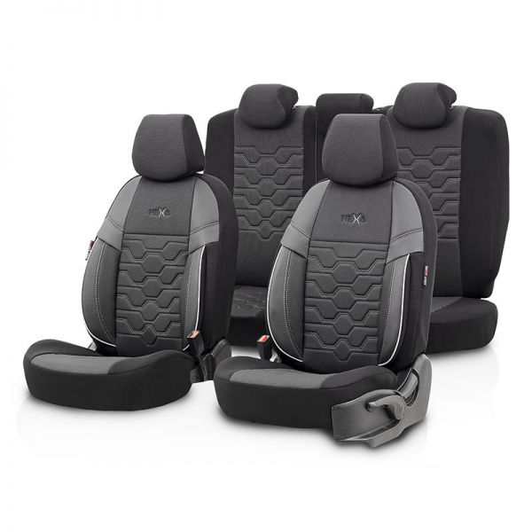 Καλύμματα Αυτοκινήτου Otom Hexa Design Universal Jacquard / Rachel / Δερματίνη Σετ Εμπρός / Πίσω 11 Τεμαχίων Μαύρο - Γκρι HEX-2805