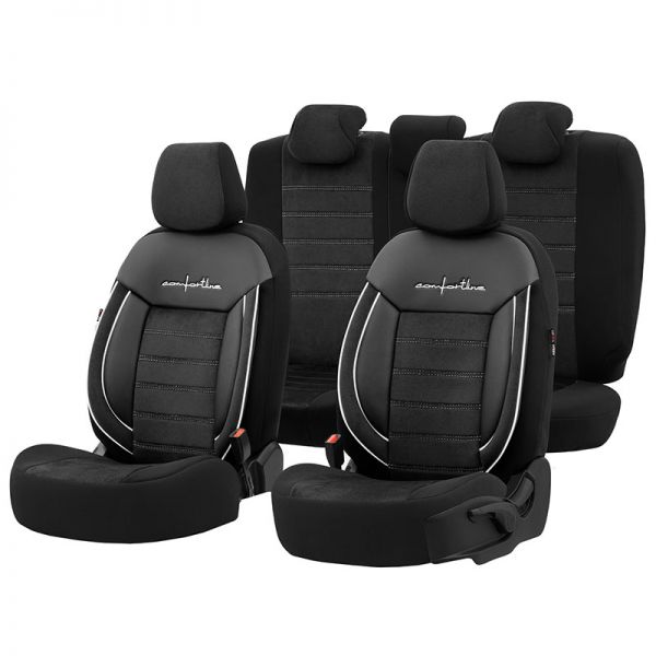 Καλύμματα Αυτοκινήτου Otom Comfortline Design Universal Sued / Rachel / Δερματίνη Σετ Εμπρός / Πίσω 11 Τεμαχίων Μαύρο Με Άσπρο Ρέλι CMF-217