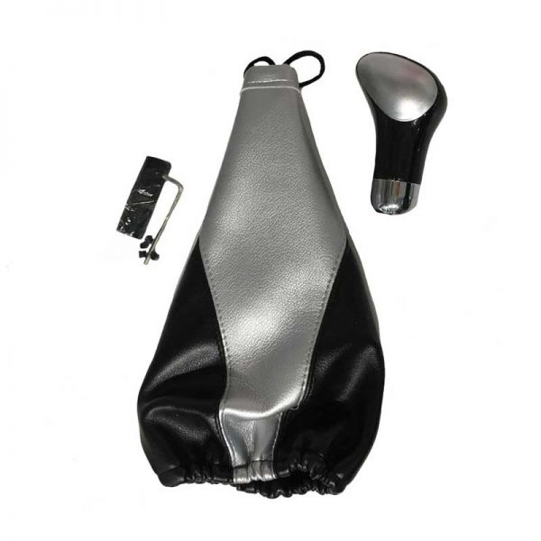 Πόμολο Λεβιέ Ταχυτήτων Universal Με Φυσούνα Δερμάτινη Μαύρο/Γκρι 2 Τεμάχια 22461