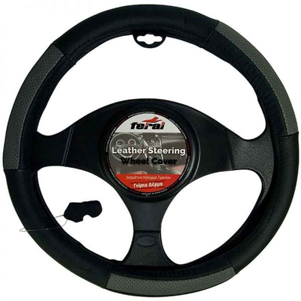 Κάλυμμα Τιμονιού Αυτοκινήτου Δερμάτινο Με PVC Μαύρο-Γκρι Medium 38cm