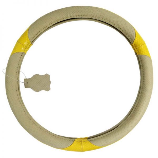 Κάλυμμα Τιμονιού Αυτοκινήτου Δερμάτινο Μπεζ-Κίτρινο Medium 38cm