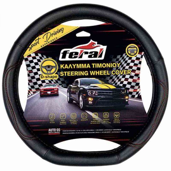 Κάλυμμα Τιμονιού Αυτοκινήτου Δερματίνη Power D Σχήμα Μαύρο Με Κόκκινη Ραφή Medium 38cm