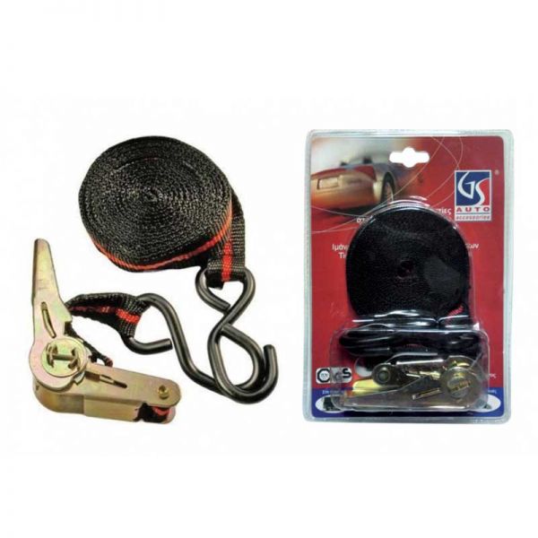 Ιμάντας Πρόσδεσης Με Καστάνια Και Γάντζους 2.5cm x 5 Μέτρα 1 Τεμάχιο