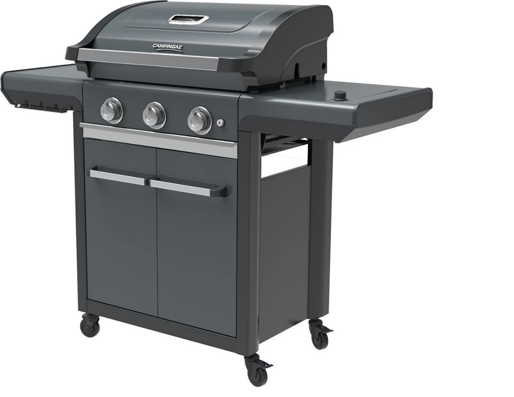 The 3 Series Premium S gas grill from Campingaz has 3 burners, with which you can have multiple temperature zones on the grilling surface to grill different types of food at the same time (e.g. meat at a high temperature and vegetables at a low temperature). The cooking surface is 61x46cm. and you will be able to cook about 7 steaks at a time.