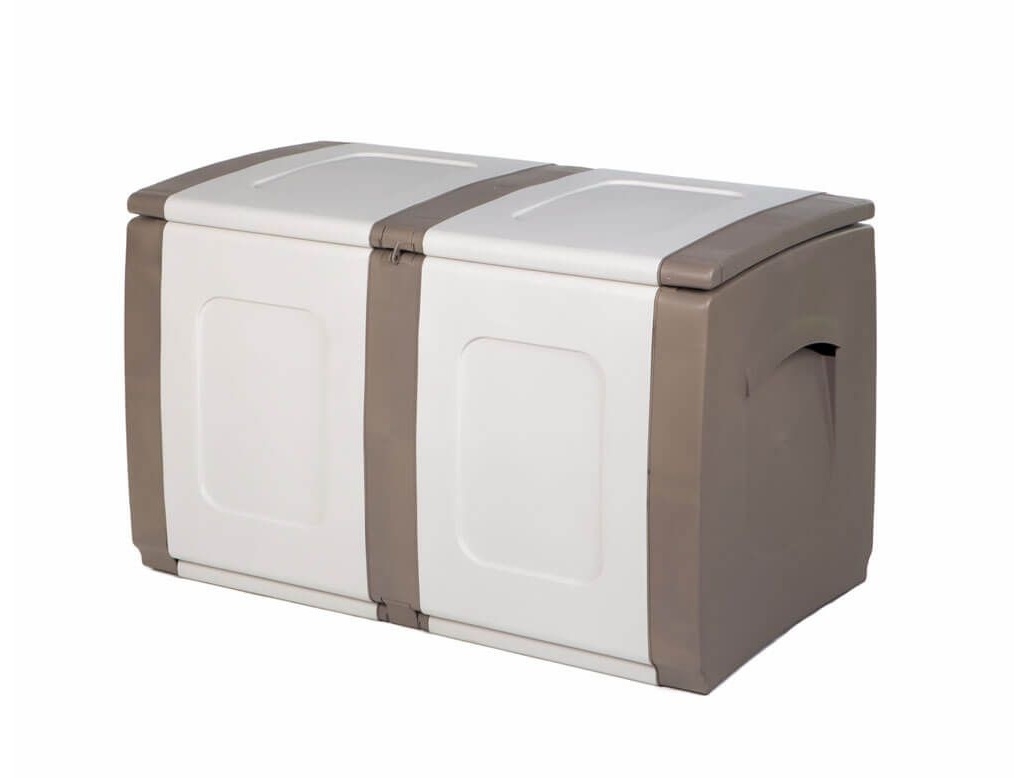 Plastic trunk ideal for storing items and organizing your space with easy assembly and durable construction for adverse weather conditions and impact resistance. A good solution for the balcony or garden to store cushions, toys or even wood for the fireplace.