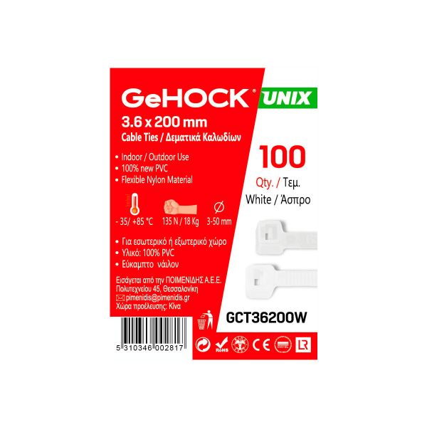 Δεματικά σε Λευκό Χρώμα 3.6x200mm 100 τεμ. GeHOCK