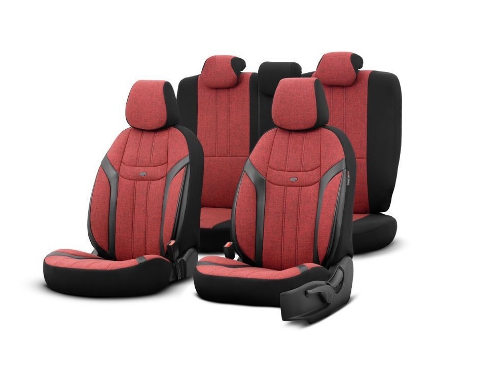 Καλύμματα Αυτοκινήτου Otom "Swan" Universal Λινό Ύφασμα / Rachel / Δερματίνη Σετ Εμπρός / Πίσω 11 Τεμαχίων Κόκκινο / Μαύρο SWN-502