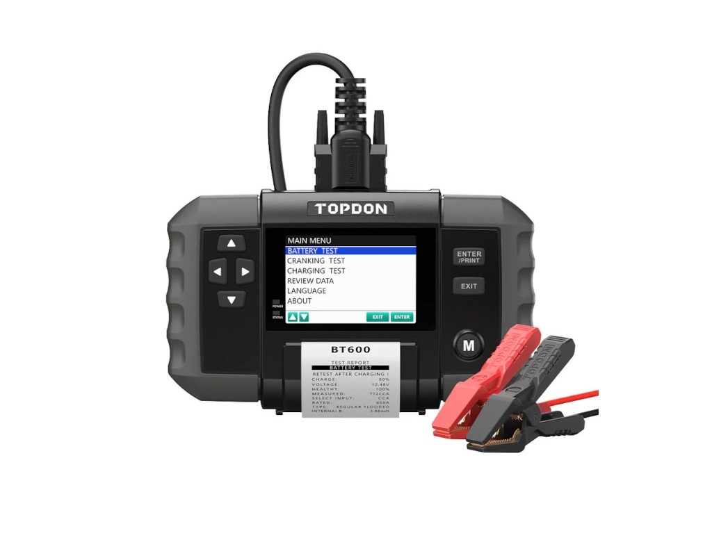Το Topdon BT600 διαγνωστικό μπαταρίας είναι ένας προηγμένος ελεγκτής μπαταριών για οχήματα 12V και 24V. Με έγχρωμη οθόνη 3.5″ και ενσωματωμένο θερμικό εκτυπωτή, αυτό το εργαλείο προσφέρει την απόλυτη λύση για ακριβείς, γρήγορες και βολικές δοκιμές. Σας επιτρέπει να βλέπετε εύκολα όλα τα δεδομένα της μπαταρίας σας και να εκτυπώνετε αναφορές σε πραγματικό χρόνο. Το BT600 υιοθετεί την πλέον σύγχρονη τεχνολογία δοκιμής αγωγιμότητας και περιλαμβάνει προστασία αντίστροφης πολικότητας από λανθασμένες συνδέσεις. Μπορεί να μετρήσει την πραγματική χωρητικότητα ρεύματος ψυχρής εκκίνησης της μπαταρίας του αυτοκινήτου, την κατάσταση της υγείας της και να αναλύσει γρήγορα τα συστήματα εκκίνησης και φόρτισης.