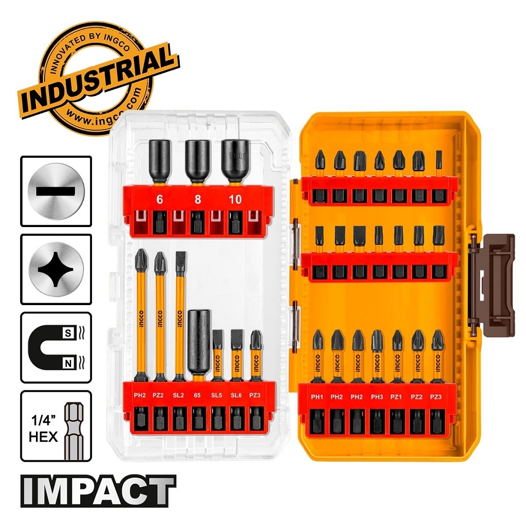 Περιεχόμενα συσκευασίας: 14 τεμ. Μύτες 25mm: PH1, PH2, PH3, PZ1, PZ2, PZ3, SL3, SL4, SL5, SL6, T20, T25, Τ27, T30.