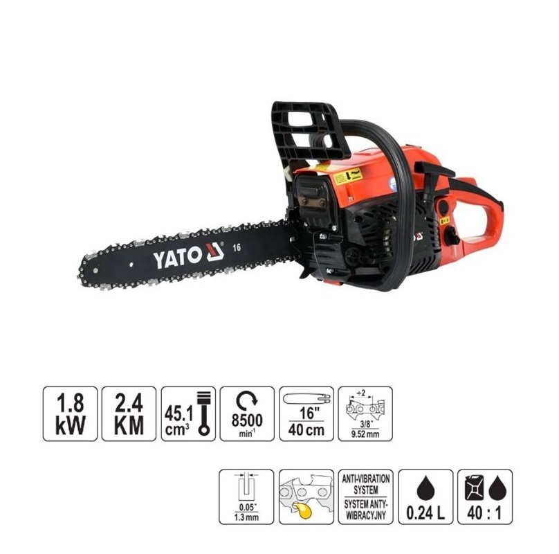 Ισχυρό και εργονομικό αλυσοπρίονο για άνετη και εύκολη εργασία. Διαθέτει συστήματα που αυξάνουν την ασφάλεια και την άνεση των χρηστών . Οι παράμετροι που χρησιμοποιούνται αυξάνουν την απόδοση του εργαλείου και επιτρέπουν τη χρήση του σε προηγμένες εργασίες κήπου. Είναι κατάλληλο για κοπή δέντρων και κλάδεμα θάμνων και κλαδιών.