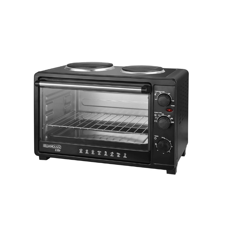Το BEP4010 είναι ένα επιτραπέζιο φουρνάκι-κουζινάκι υψηλής ισχύος της BORMANN ELITE: διαθέτει 2 εμαγιέ εστίες και έναν μεγάλης χωρητικότητας φούρνο μεγάλης ισχύος με τρία διαφορετικά προγράμματα ψησίματος ώστε να προσαρμόζεται στις ανάγκες σας. Επιπλέον, διαθέτει χρονοδιακόπτη 60 λεπτών με κουδούνι ειδοποίησης και ενδεικτική λυχνία.