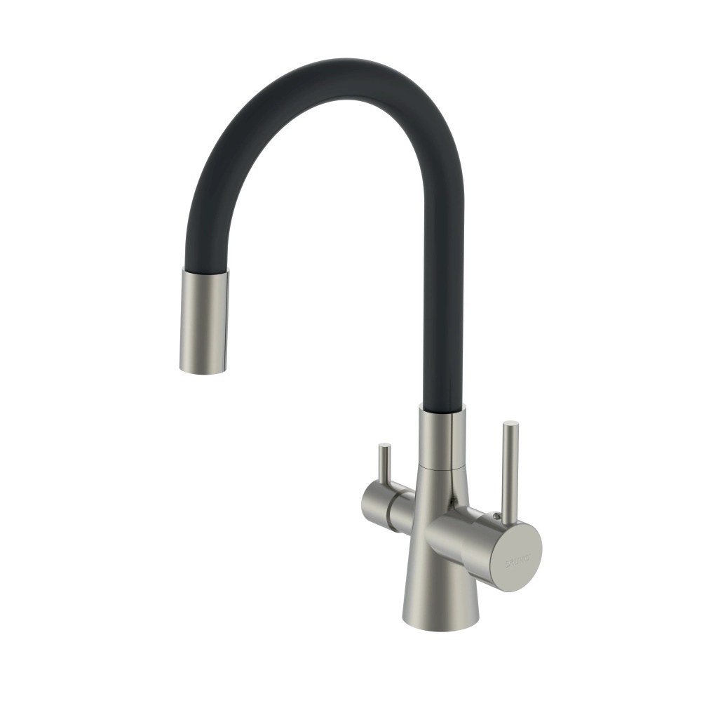 Αυτή η μπαταρία πάγκου κουζίνας διαθέτει τρίοδο σχεδιασμό για τη σύνδεση με φίλτρο νερού και το δίκτυο παροχής ζεστού και κρύου νερού. Έτσι, μπορείτε να απολαμβάνετε καθαρό, φιλτραρισμένο νερό και να επιλέξετε παράλληλα ανάμεσα σε ζεστό και κρύο νερό με τους διακόπτες.