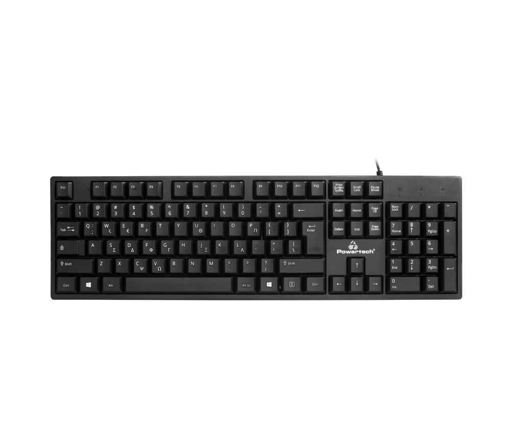 POWERTECH πληκτρολόγιο PT-1074, ενσύρματο, EN/GR, μαύρο