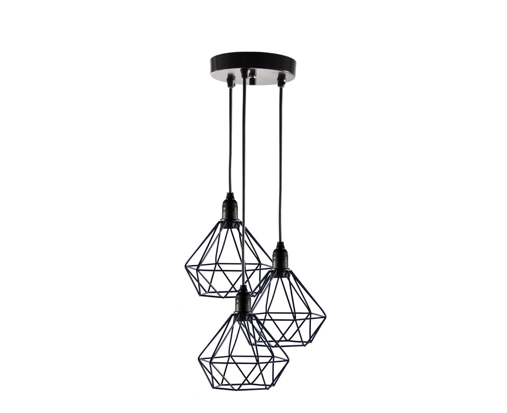 Τρίφωτο κρεμαστό φωτιστικό οροφής σε σχήμα διαμαντιού με προσεγμένο φινίρισμα που θα προσφέρει στον χώρο σας έναν όμορφο τόνο. Το καλαίσθητο σχέδιο του, σε συνδυασμό με το μαύρο του χρώμα του προσδίδει συμβατότητα σε κάθε χώρο, ταιριάζοντας αρμονικά είτε σε μοντέρνο είτε σε πιο παραδοσιακό περιβάλλον. Είναι κατασκευασμένο από μέταλλο και με μεγάλη προσοχή στην λεπτομέρεια, η οποία ολοκληρώνεται από την εξαιρετικής ποιότητας βαφή.