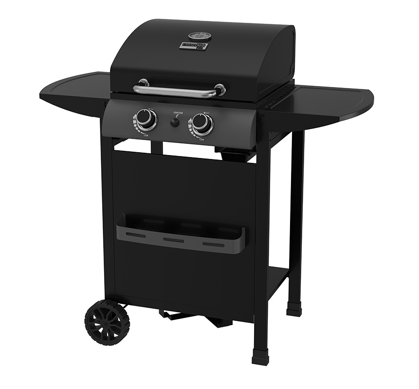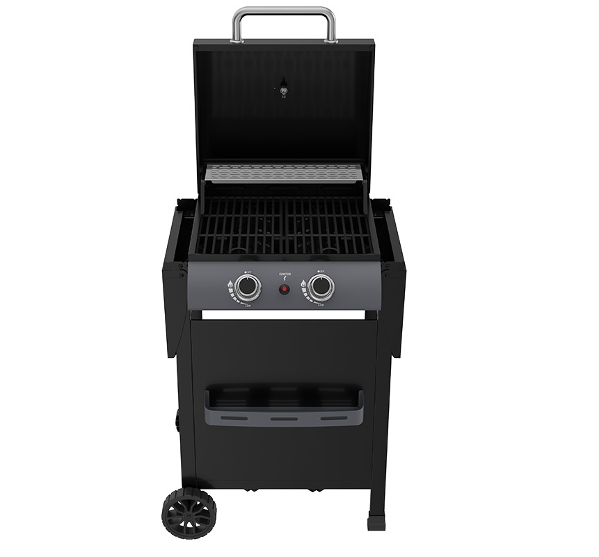 Ψησταριά Υγραερίου FORGE, 2 εστιών, με μαντεμένια σχάρα, ρόδες για εύκολη μεταφορά και μεγάλο θερμόμετρο στο καπάκι. Επίσης διαθέτει 2 αναδιπλούμενα ράφια στις πλευρές και πιεζοηλεκτρικό άναμμα εστιών.