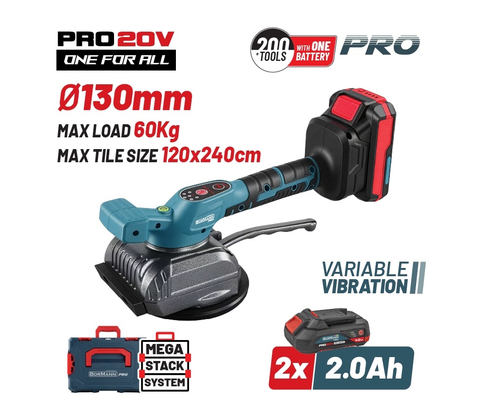 BORMANN Pro BBP5426X22C Βεντούζα-Δονητής Πλακιδίων 20V,Li-Ion,2x2Ah,130mm,60kg,3500-8000rpm