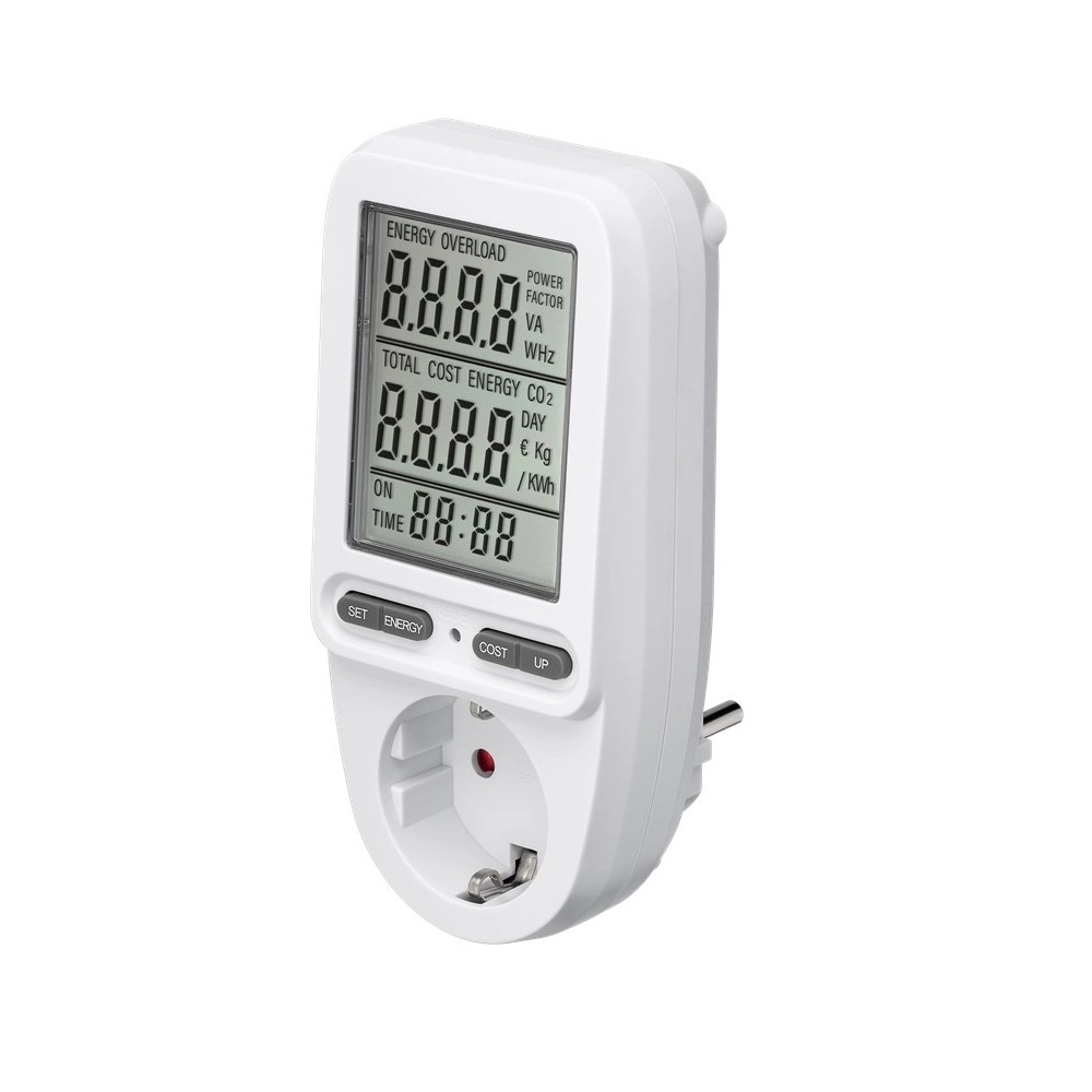 Μετρητής της Goobay για τη μέτρηση της κατανάλωσης ρεύματος των συνδεδεμένων οικιακών ηλεκτρικών συσκευών. Ενσωματώνει ευανάγνωστη οθόνη που σας επιτρέπει να παρακολουθείτε την κατανάλωση του ρεύματος κόστος σε ευρώ/kWh αλλά και τον χρόνο κατανάλωσης. Τα δεδομένα μπορούν να αποθηκευτούν για έως 20 λεπτά μετά την αποσύνδεση της συσκευής, επιτρέποντας σας την εναλλαγή διαφορετικών ηλεκτρικών συσκευών χωρίς να χάσετε τα δεδομένα.