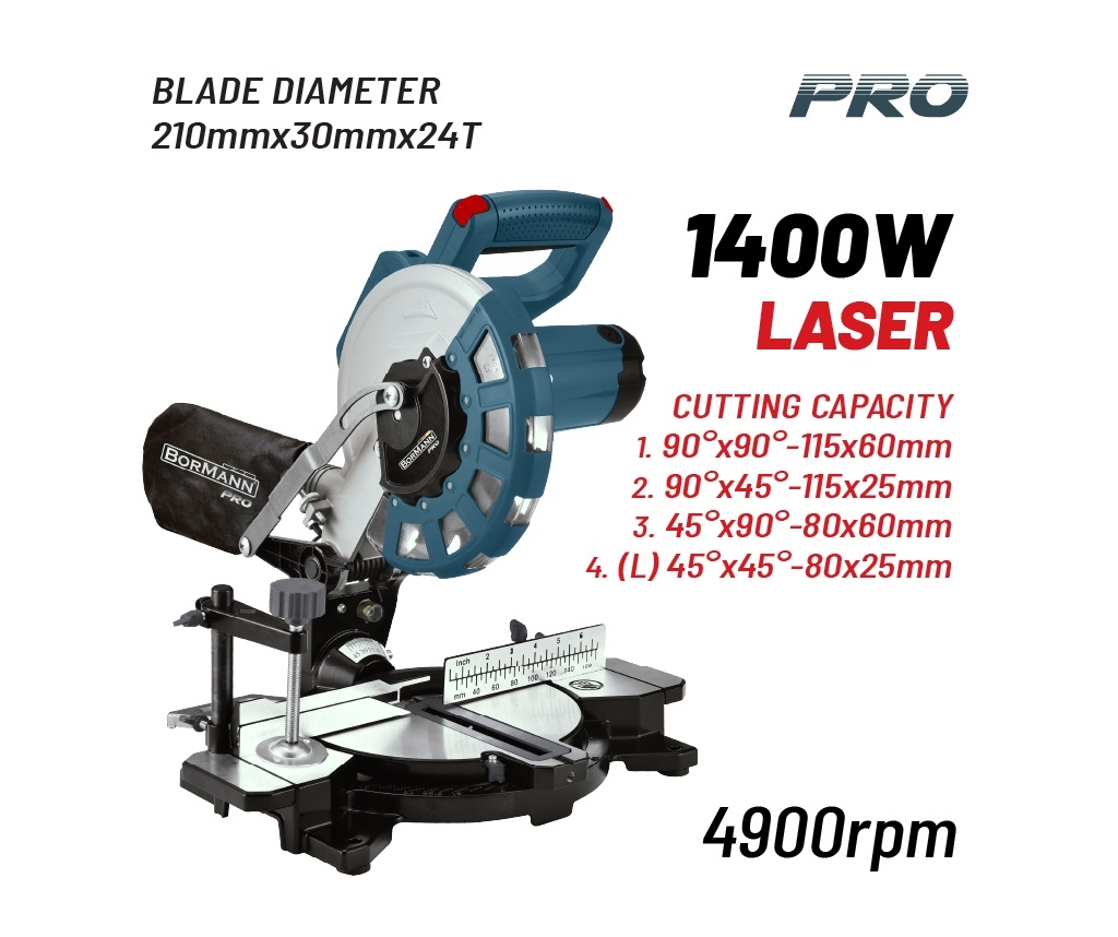 BORMANN Pro BDX2135 Φαλτσοπρίονο Φ210x30mm 24T,1400W,4900rpm,LASER - Saws - Cutters - Slide Mitre Saws - Shears