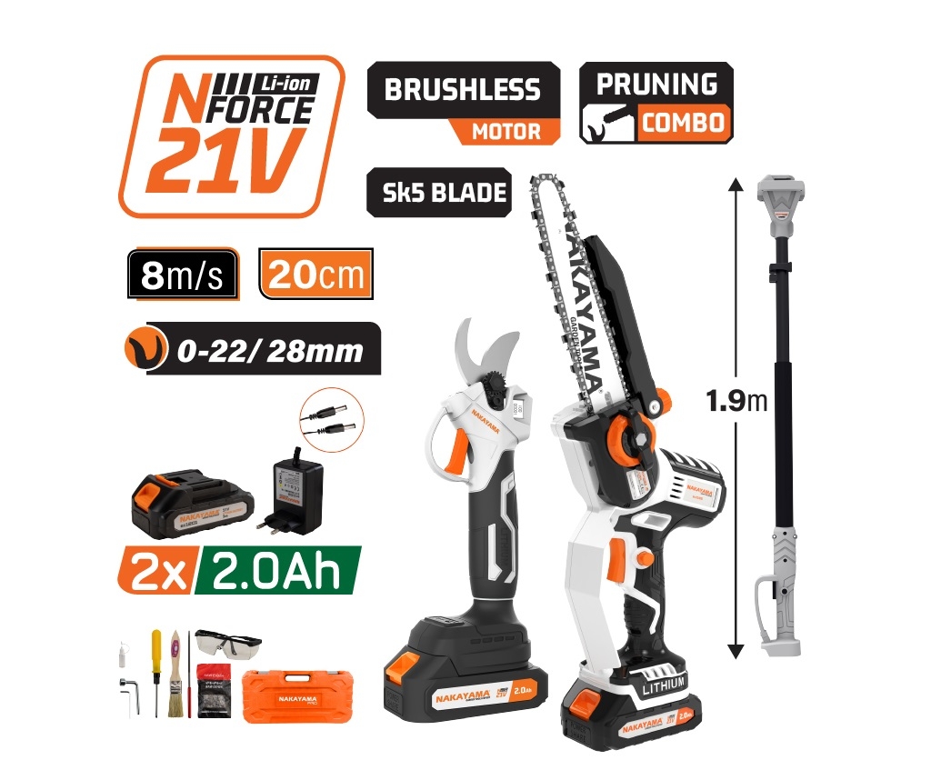 NAKAYAMA Pro EC1221X44T3C Σετ Αλυσοπρίονο,Ψαλίδι Κλάδου και Προέκταση 1,2-1.9m, Βαλίτσα