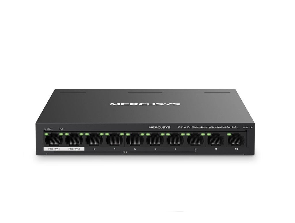 Το desktop switch της Mercusys σας επιτρέπει να επεκτείνετε το ενσύρματο δίκτυο σας με 10x 10/100Mbps θύρες, εκ των οποίων οι 8x υποστηρίζουν PoE+.