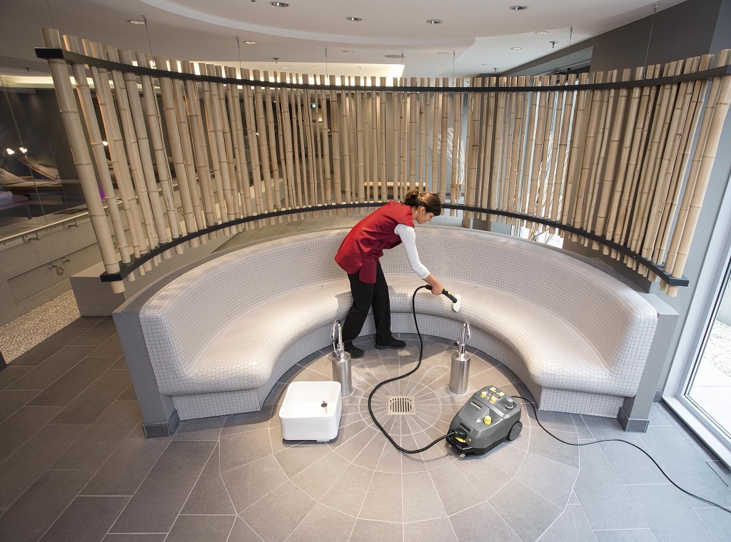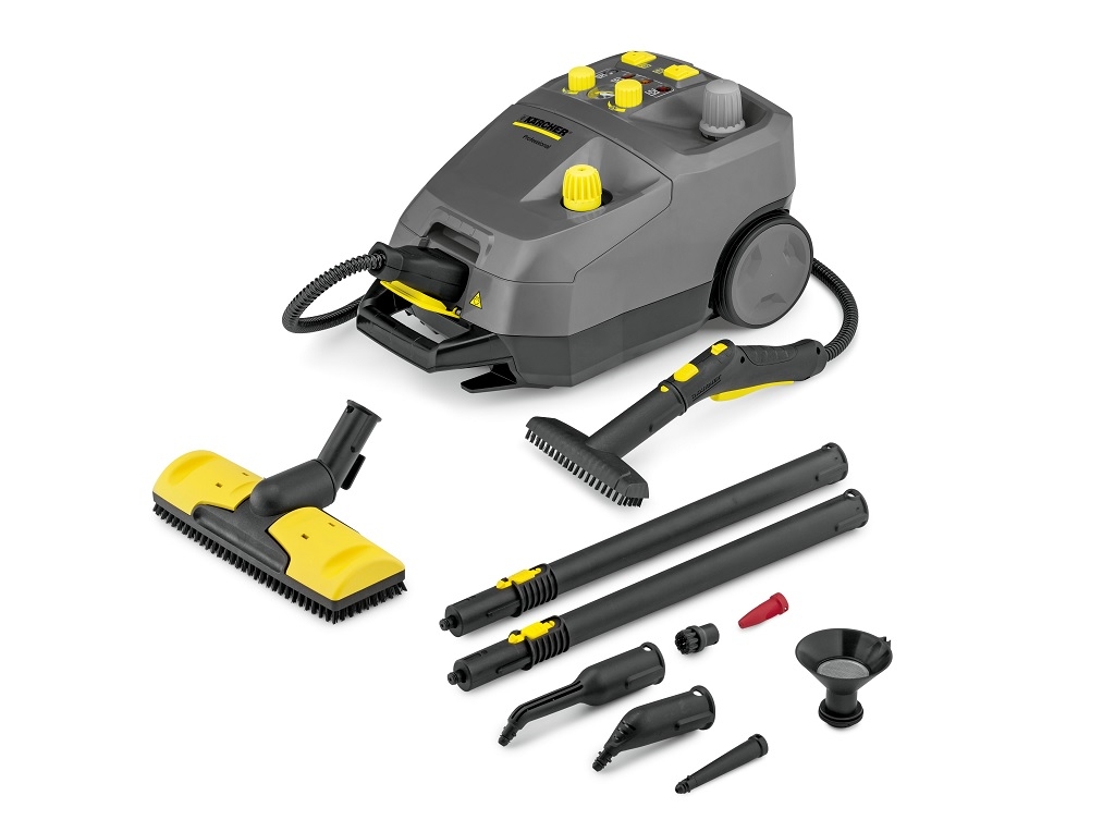 Ο SG 4/4 είναι ένας συμπαγής και ανθεκτικός ατμοκαθαριστής, ο οποίος χάρη στην πίεση ατμού 4 bar εντυπωσιάζει με την εξαιρετική απόδοση καθαρισμού και την πιστοποιημένη απολύμανση*. Η δυνατότητα του ελέγχου της ποσότητας ατμού και η λειτουργία VapoHydro για την επιλογή της ποιότητας του ατμού (ξηρός ή υγρός) δίνουν τη δυνατότητα για τέλεια προσαρμογή του μηχανήματος στην αντίστοιχη εργασία καθαρισμού. Το σύστημα δύο δεξαμενών που θερμαίνεται γρήγορα έχει δυνατότητα συνεχούς πλήρωσης, παρέχοντας έτσι μεγάλες περιόδους αδιάλειπτης εργασίας. Το μηχάνημα διαθέτει ενσωματωμένο δείκτη θερμοκρασίας, λειτουργεί εντελώς χωρίς χημικά πρόσθετα και είναι για γενική χρήση. Το ολοκληρωμένο πακέτο εξοπλισμού περιλαμβάνει 2 ακροφύσια δαπέδου (για καθαρισμό λείανσης και υγιεινής), ένα ενσωματωμένο χώρο αποθήκευσης των εξαρτημάτων, ένα ενσωματωμένο γάντζο καλωδίου, καθώς και μια βάση για σωλήνες για εξοικονόμηση χώρου κατά την αποθήκευση. (* σύμφωνα με το EN 16615, δάπεδο PVC, μηχάνημα: SG 4/4 (ακροφύσιο δαπέδου με ελάσματα, 30 cm/sec., μέγιστη πίεση ατμού, ελάχ. VapoHydro) βακτηρίδιο δοκιμής: Enterococcus hirae ATCC 10541, ιός δοκιμής: MVA, Murines Norovirus, Adenovirus.)