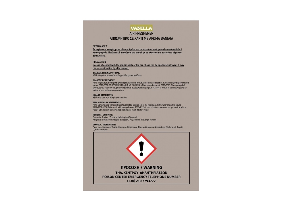 • For greater gradually take the aromatic paperboard out of the sachet.